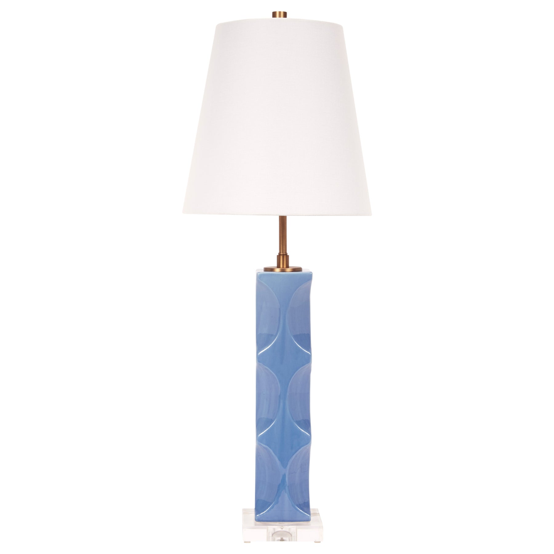 Tracy Parisian Blue Ceramic Table Lamp with White Linen Shade